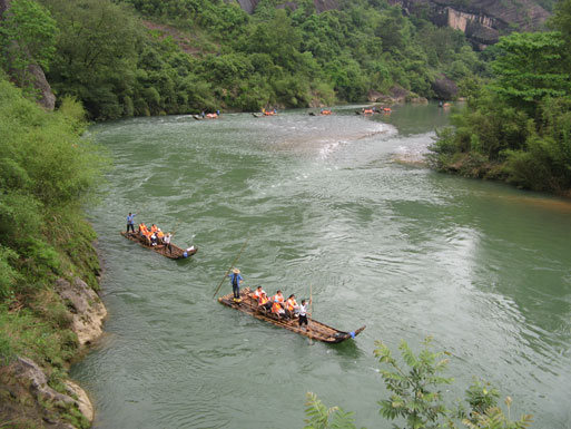 3輛客車,150人的隊伍,400多公里的路程,到達了世界文化與自然遺產--武夷山。 武夷山風景秀麗,氣候宜人,空氣清新,藍天、白云、奇山異石、古跡、溪流,處處美景盡收眼底!好山好水好天氣,3天的時間大致游覽了武夷山的著名景點,從天游峰、一線天、虎嘯巖、九曲溪,到最后的大紅袍景區,都讓人流連忘返。