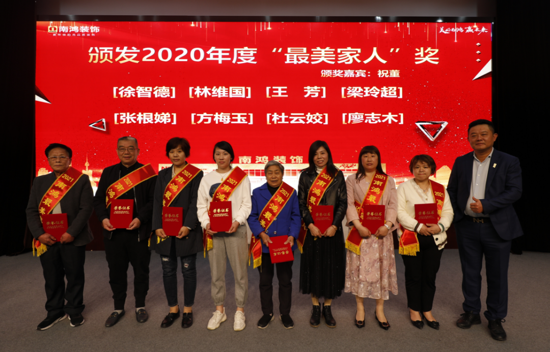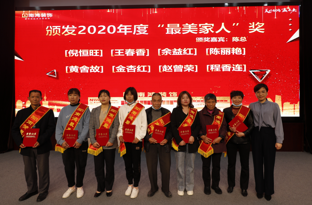 最美家人專屬獎(jiǎng)項(xiàng)的頒布,不僅是南鴻裝飾對(duì)員工家屬長(zhǎng)久以來付出的肯定,也鞭策著全體員工努力工作,爭(zhēng)當(dāng)優(yōu)秀,回報(bào)家人。